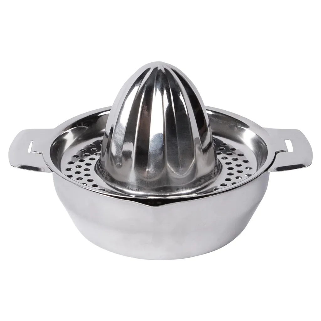 Easily add freshly-squeezed lemon, lime, orange and other citrus juices to cooking sauces, cocktails and other culinary creations with this Stainless Steel Manual Juicer from Argon Tableware.