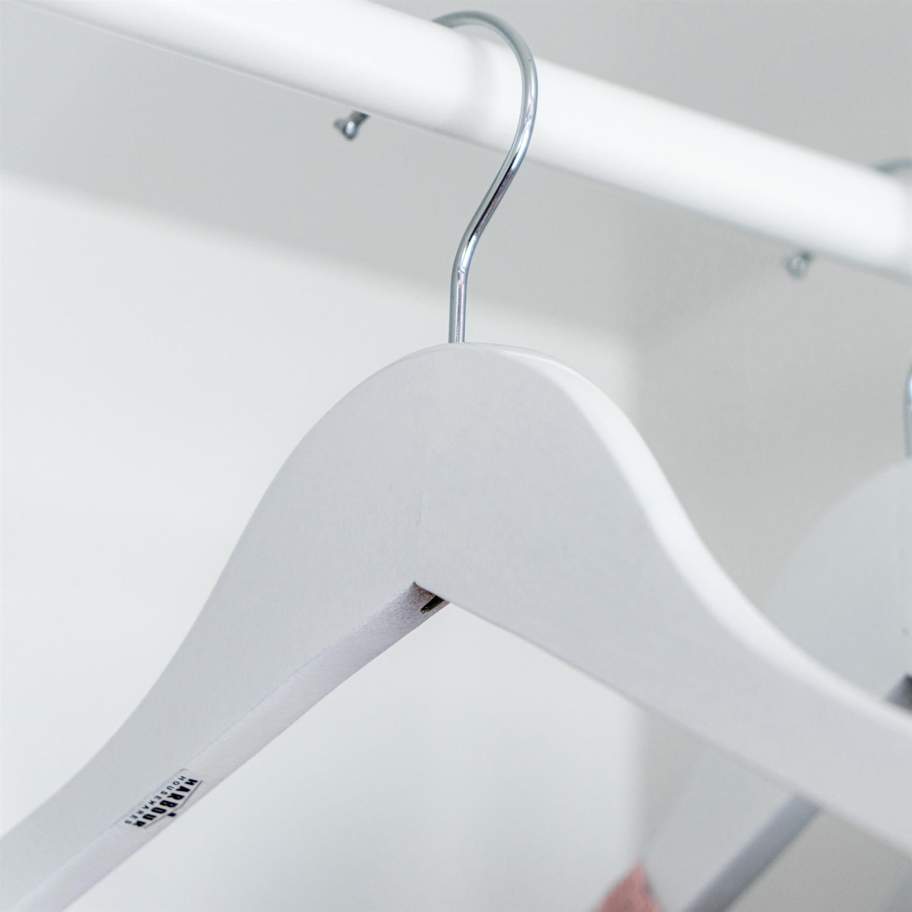 Twin shoulder notches help to keep strappy dresses, vests and even cardigans secure without slipping, while a handy trouser bar offers the opportunity to house an entire outfit on a single hanger to help save on storage space.